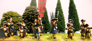 Now, what I know about the GNW would not fill a postage stamp, but I am learning fast. The armies seem to be equipped with early flintlocks but still retain a few pikemen to ward off cavalry. The Swedes look very smart in blue with various facing colours, but a lot of yellow and buff.